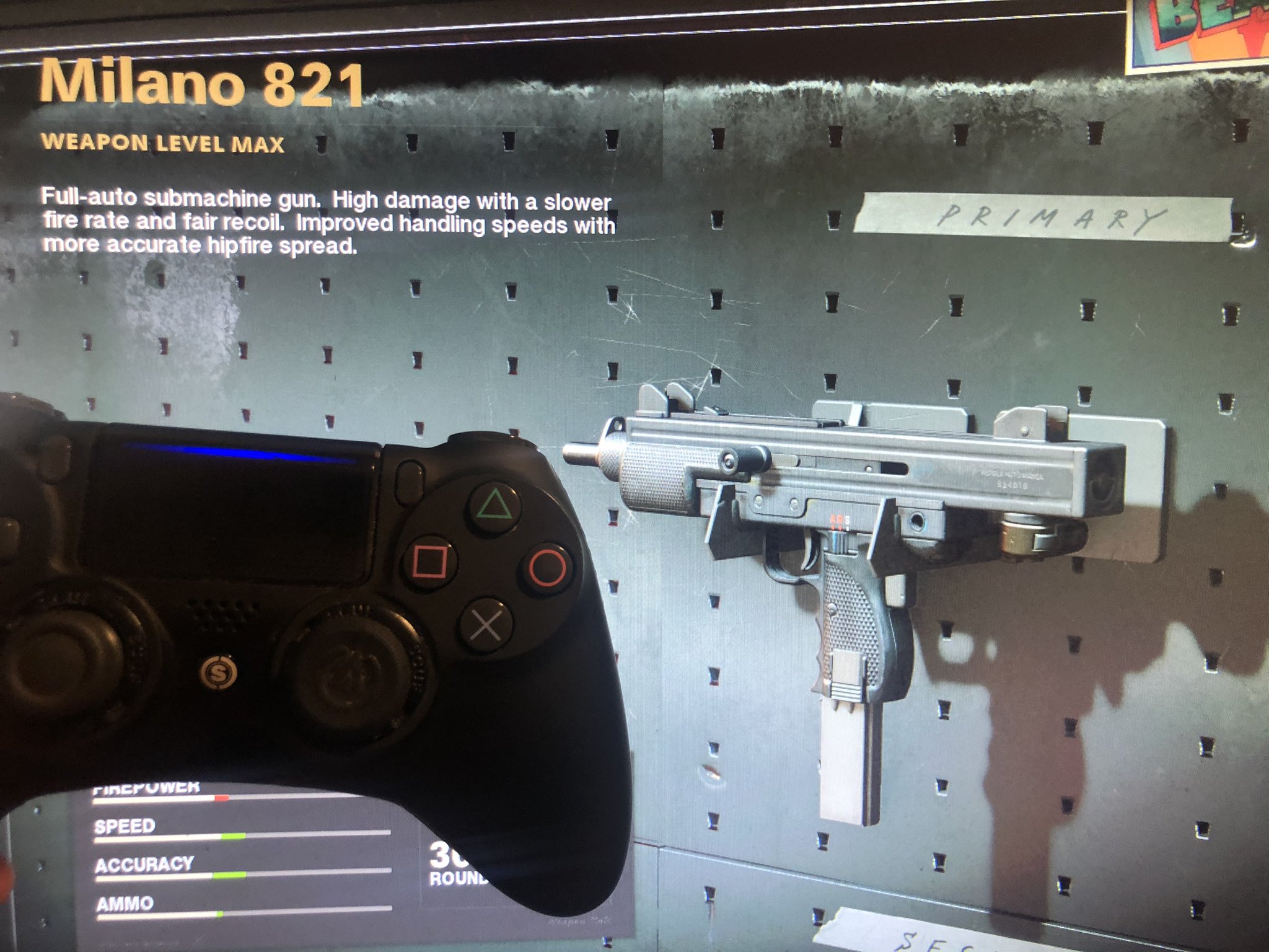 The milano 821 first appears in the first mission nowhere left to run, where it is among the three weapons that can be selected from the trunk of the car.